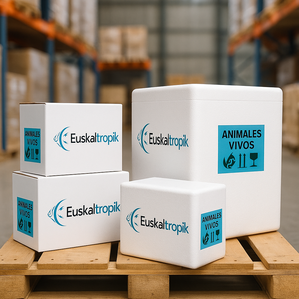 Usamos bolsas infladas con aire, bolsas térmicas, cajas de doble canal y heat-pack/refrigerantes según la época del año. Tomamos todas las medidas necesarias para que los peces viajen en condiciones optimas.