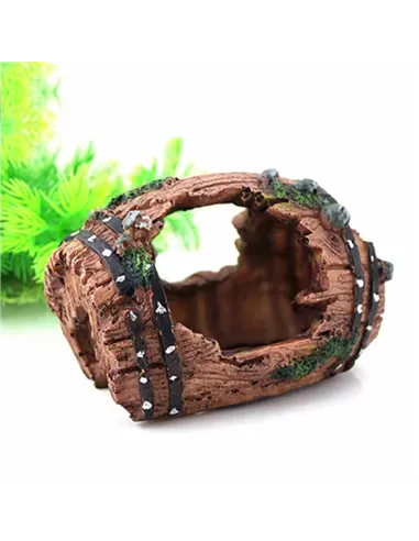 Dale un toque natural, elegante y seguro a tu acuario con este barril decorativo de resina disponible en color negro o marrón. Su diseño envejecido con detalles de musgo simula un barril hundido, creando un ambiente realista y atractivo para tus peces.