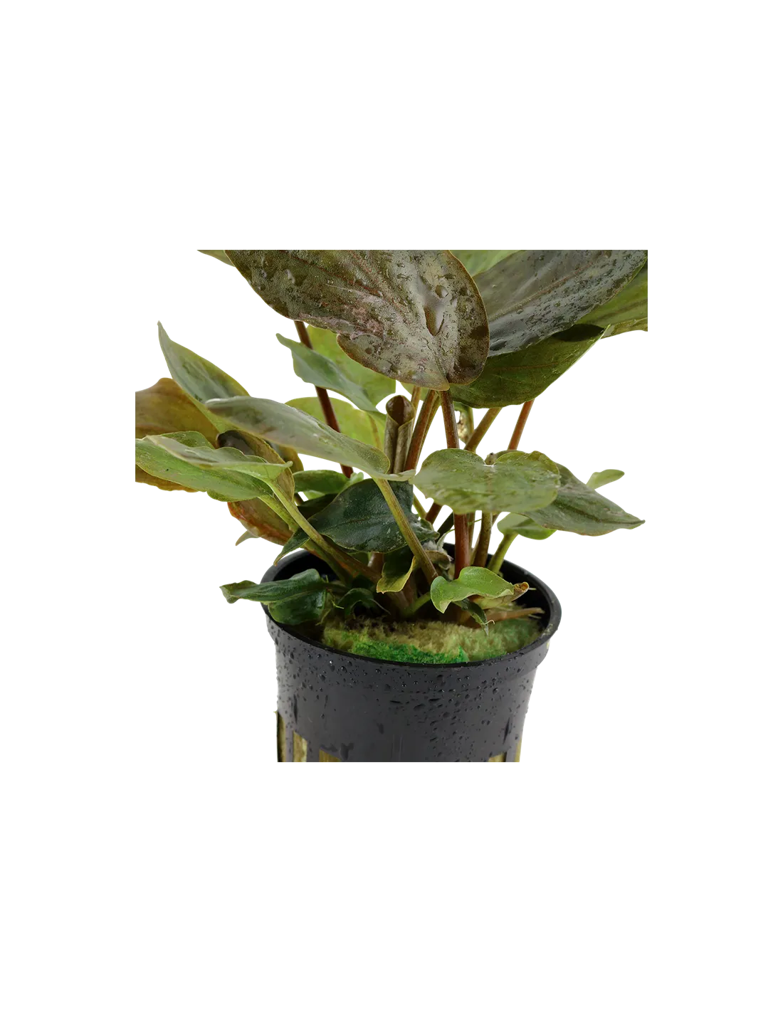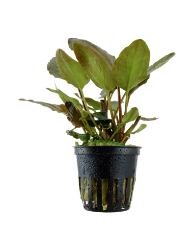 Para mantener la Lagenandra meeboldii 'Red', se recomienda un acuario de al menos 60 litros, con un sustrato nutritivo que favorezca su crecimiento. La filtración debe ser eficiente pero no excesiva, ya que esta planta prefiere aguas tranquilas. Es ideal colocarla en la zona media o de fondo del acuario, donde pueda recibir luz moderada. Cambios de agua del 20% cada dos semanas son aconsejables para mantener la calidad del agua. Esta planta es compatible con una variedad de peces y invertebrados pacíficos, pero evita colocarla con especies que puedan causar daño a sus hojas.